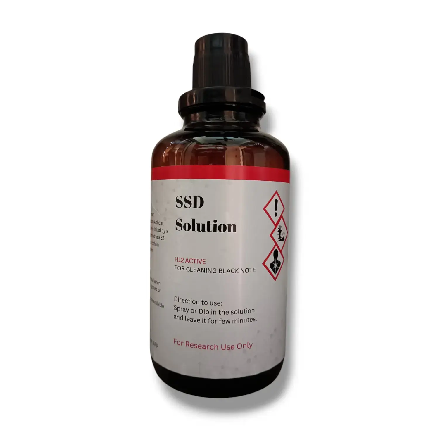 The SSD Chemical Solution (500ml) is a premium-grade formula designed specifically for cleaning black, defaced, or anti-breeze banknotes. This product is widely used by currency cleaning professionals, forensic analysts, and individuals dealing with chemically marked or stained money. It is scientifically formulated to restore notes affected by security dyes, anti-theft stains, and coded inks, making them usable again without compromising their physical structure or embedded security features.